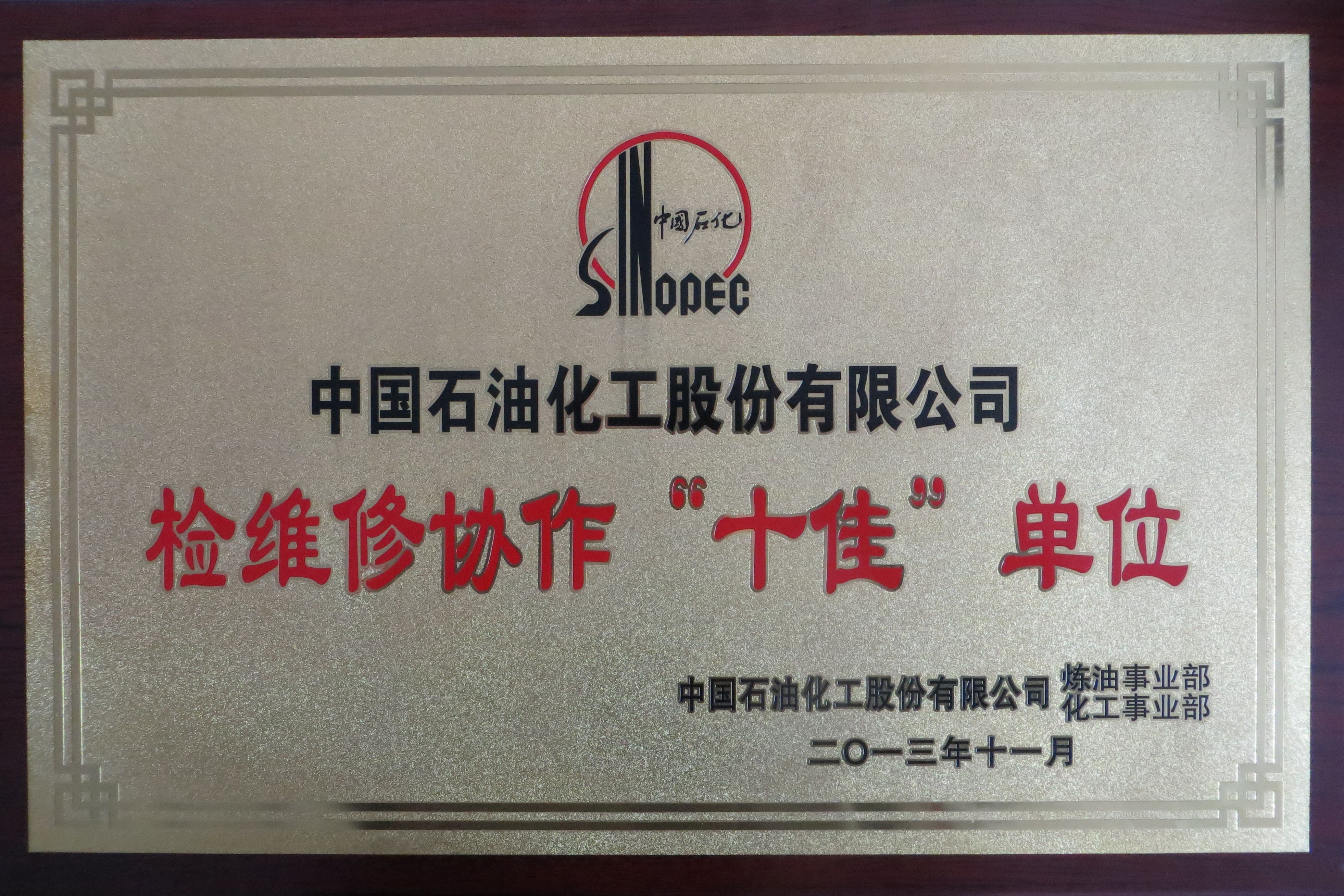 中石化檢維修協(xié)作“十佳”單位